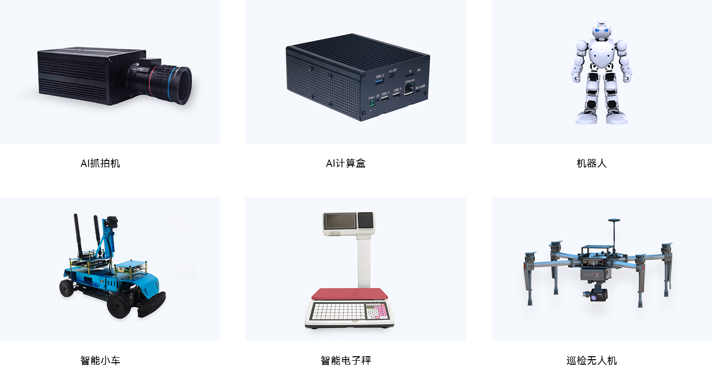包括但不限于AI抓拍機、AI計算盒、機器人、智能小車、智能電子秤、巡檢無人機