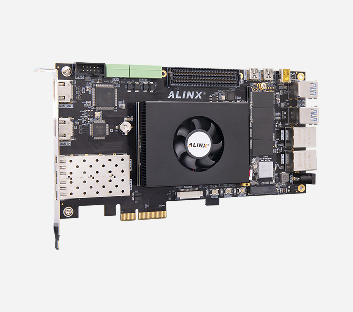 豐富的外圍接口:1 個 FMC LPC 接口、2 路 SFP 光纖接口、HDMI 輸入輸出各 1 路、1 路 NVME M.2 接口、1 路 DP 接口、1 個 MIPI 攝像頭接口、4 個 USB3.0 接口、2 路千兆以太網接口、2 路 UART 串口接口、1 路 SD 卡接口、2 路 CAN 總線接口、2 路 RS485 接口,支持 AI 智能、云計算、深度學習、網絡通信、高速數據傳輸、視頻圖像處理和工業控制等多領域應用