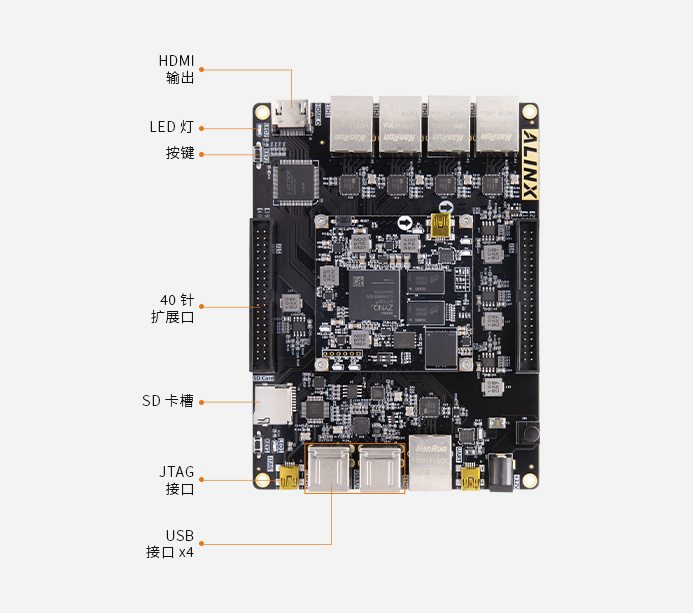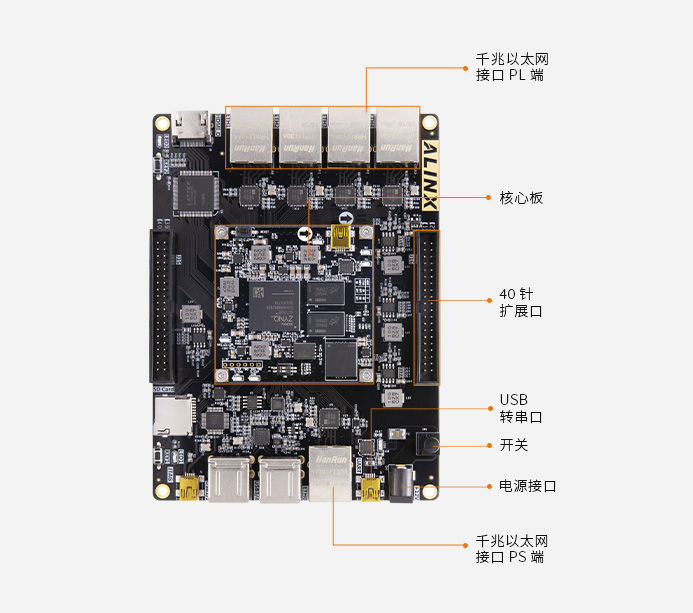 該系列開發板有 AX7021 和 AX7021B 兩種,僅擴展板網口芯片不同,功能相同,