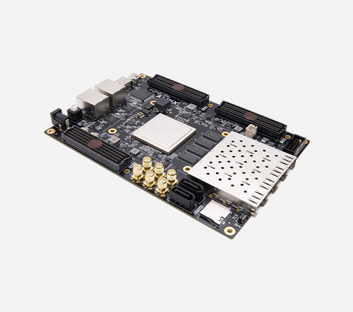 豐富的外圍接口:1 個 FMC HPC 接口、2 個 FMC LPC 接口、4 路 SFP+光纖接口、1 路 HDMI 輸出、2 路千兆以太網接口、2 路 SATA 接口、1 路 UART 串口接口、1 個 SD 卡座、1 個 10 針 JTAG 口