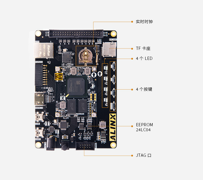 預留了 JTAG 口,可對 FPGA 進行調試和程序固化