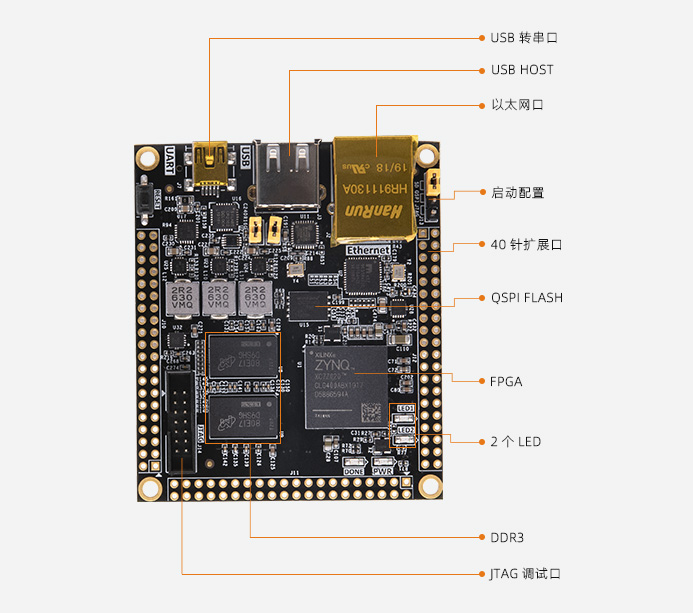 3 路 40 針的擴展口,擴展 ZYNQ 的 PL 部分和 PS 部分的 IO 接 7 寸 TFT 模塊、攝像頭模塊和 AD / DA 模塊等擴展模塊