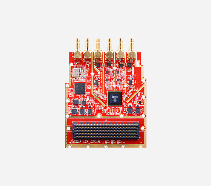 覆蓋 300MHz~6GHz 頻段,并集成了雙通道收發鏈路,發送實時帶寬最大250MHz,接收帶寬最大 100MHz 適合應用于通用軟件無線電平臺