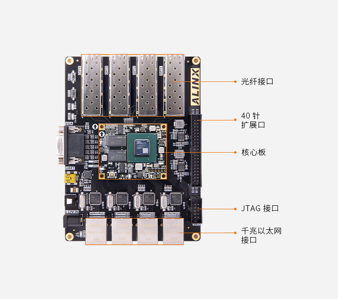4 路 SFP 高速光纖接口,每路的光纖數據通信接收和發送的速度高達 6.6Gb/s