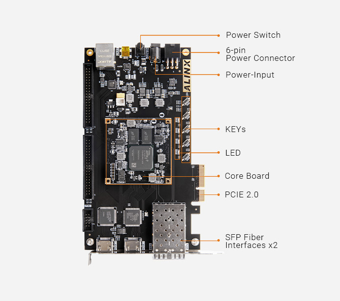 Two 40-Pin Expansion Ports ( 0.1 inch Pitch ) Can be Connect with Various ALINX Modules ( Binocular Camera Module, TFT LCD Screen, Camera, AD / DA and Other Modules )